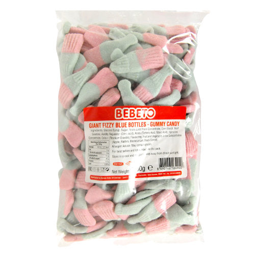 Gummy, Giant Fizzy Blue Bottles are delicious sweets made by Bebeto that are halal approved. They come in a wholesale 2kg bulk bag.
