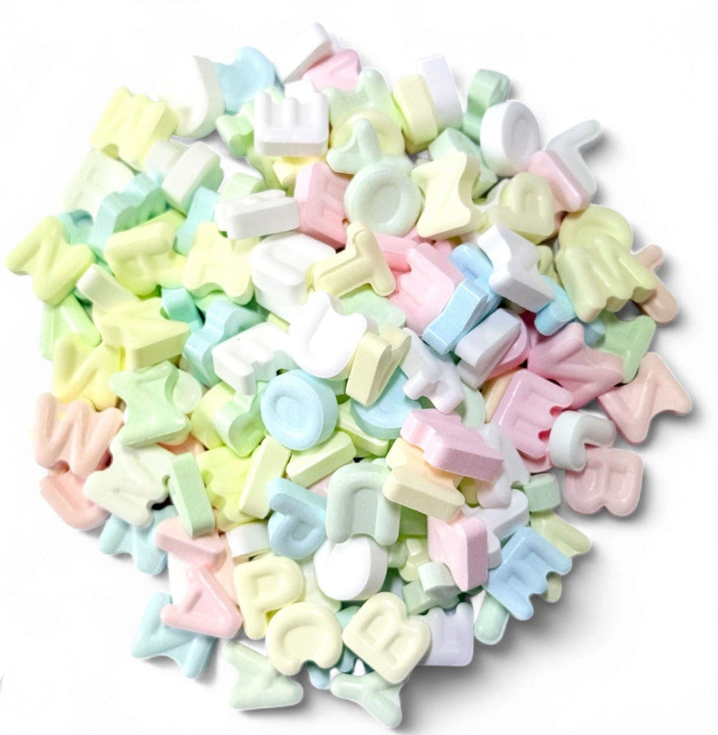 Fruit flavoured hard candy in the shape of various letters. 2.5kg wholesale trade bulk bag.