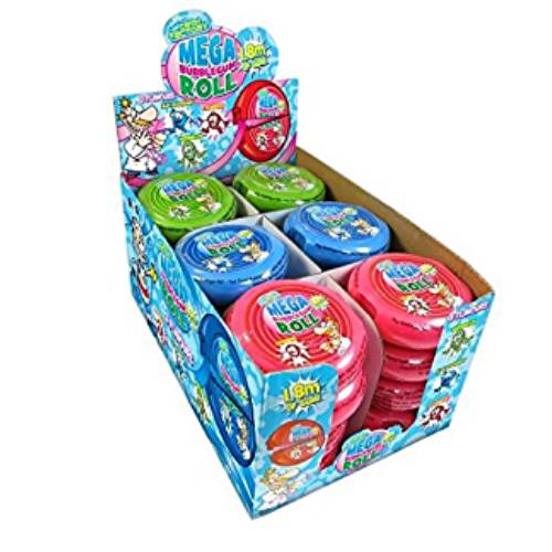 Mega bubblegum rolls are delicious bubblegum pieces all rolled up! These come in a wholesale case of 24 units.