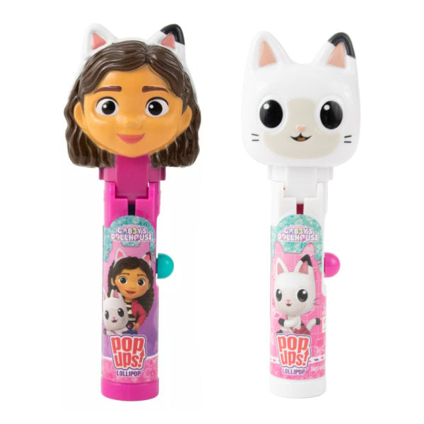 Gabby dollhouse pop ups are delicious novelty lollipops that are made by BIP candy. These come in a wholesale case that contains 12 Gabbys dollhouse lollies.