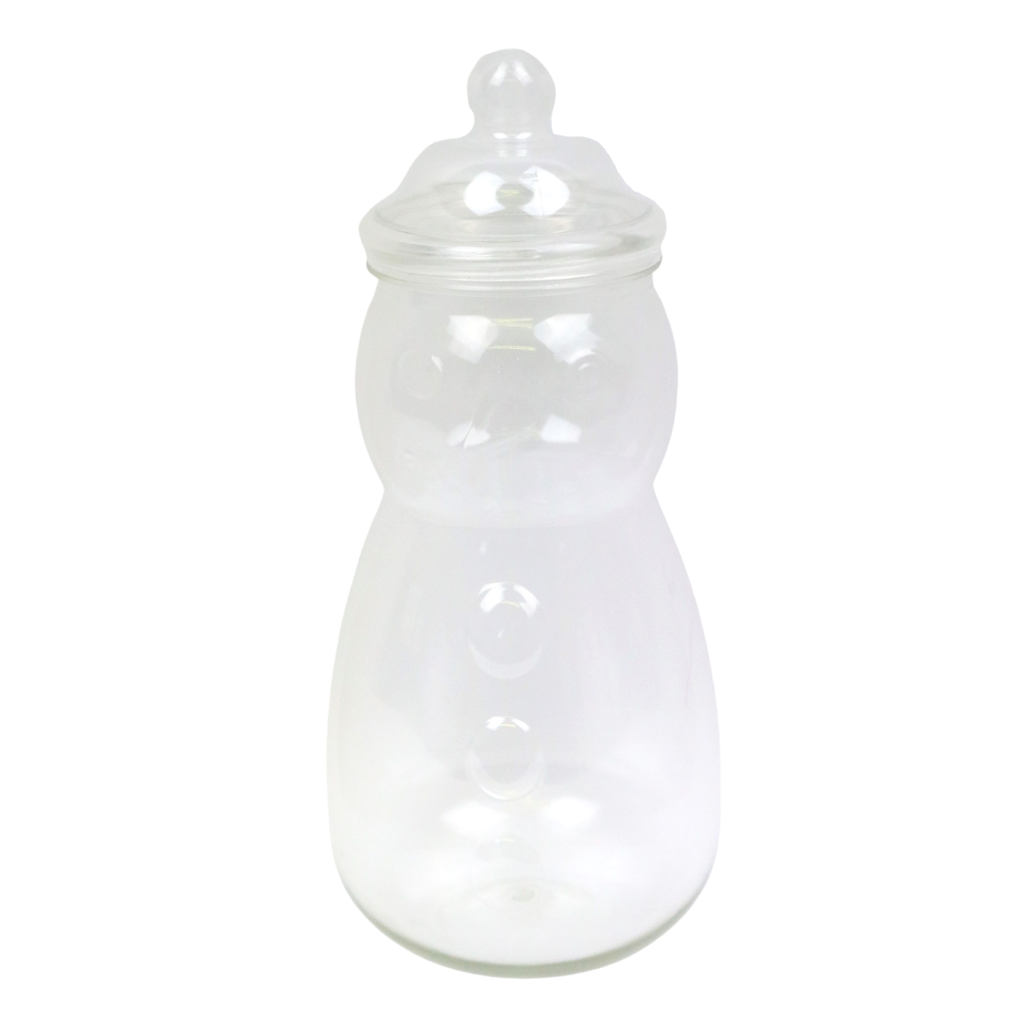 This empty snowman with a face jar is great for stocking with sweets and comes with a clear lid.